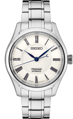 Presage Craftsmanship Series Arita Porcelain Fine mechanical watchmaking from Japan Automatic with manual winding capability Classic Roman numerals Screwdown see-through caseback Three-dimensional Hakuji (pure white) Arita porcelain dial with special glaze