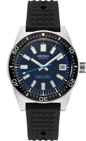 1965 Diver's Watch Recreation 55th Anniversary Limited Edition. Designed for those who treat life as the ultimate adventure, the Seiko Prospex line meets every challenge with technological excellence and style. Part of a rich legacy of innovation in high-intensity timekeeping, Prospex continues to celebrate a long history of sports watch excellence with recreations and reinterpretations of landmark achievements. Joining a special collection marking the 55th anniversary of Seiko's first diver's watch, this extraordinary Automatic Diver, available only in a limited edition of 1,700, with the serial number engraved on each caseback, also celebrates Seiko's role in Antarctic exploration as essential equipment for the work of the Japanese Antarctic Research Expedition (JARE). The smoothly tapered case, crafted of Seiko's new Ever-Brilliant Steel, for an exceptional level of corrosion resistance and a lighter, brighter finish, features hairline finishing to suggest a glacier. Designed to evoke the ocean depths at the point at which blue yields to darkness, the marine blue dial features a date calendar and LumiBrite hands and markers. The 26-jewel automatic movement beats at a frequency of 28,800 vibrations per hour, with a power reserve of approximately 50 hours, and can be wound manually or automatically. Upgraded with a box-shaped anti-reflective sapphire crystal, this exceptional watch follows ISO standards for scuba diving to depths of up to 200 meters and includes a black one-way rotating elapsed timing bezel and screwdown crown and caseback, as well as a two reinforced silicone straps, in black and marine blue, paying tribute to the advanced original "TROPIC" design. 200m Water Resistant