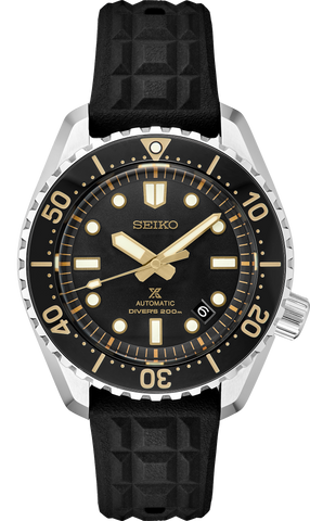 1968 Diver's Watch Modern Re-Interpretation Limited Edition Limited Edition of 600 Serial number engraved on caseback Prospex Automatic Diver Automatic with manual winding capability Black uni-directional rotating elapsed timing bezel Black dial with gold accents Date calendar LumiBrite hands, markers and bezel indicators Screwdown crown and caseback Zaratsu polishing Packaged in a Limited Edition collectors' box