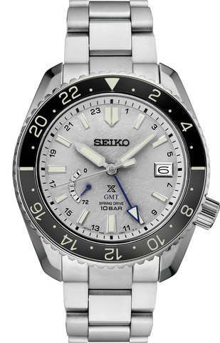 Prospex LX U.S. Special Edition Inspired by the moon and the role of Seiko Spring Drive technology in space exploration Spring Drive Automatic with manual winding capability Sapphire rotating GMT bezel Gray lunar-surface textured dial Power reserve indicator Date calendar LumiBrite hands and markers Blue GMT hand Screwdown crown and caseback Tri-fold push-button release clasp Presented in a special collectors' box with a Special Edition certificate