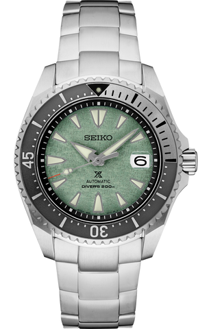Prospex U.S. Special Edition Prospex Automatic Diver Automatic with manual winding capability Two-tone uni-directional rotating elapsed timing bezel Date calendar LumiBrite hands and markers Screwdown crown and caseback Tri-fold push button release clasp with secure lock and extender Light green textured dial evoking the mineral and stone deposits of underwater caves