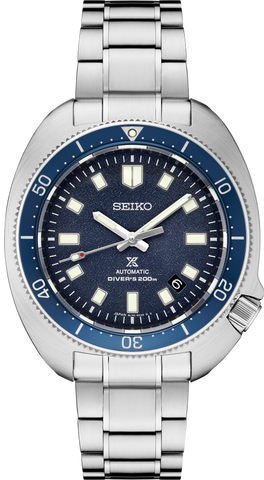Naomi Uemura Commemorative Limited Edition Diver Limited edition of 1,200 Production serial number engraved on caseback Manual and automatic winding capabilities Blue one-way rotating elapsed timing bezel Textured blue dial Date calendar LumiBrite hands and markers Screwdown crown and caseback Tri-fold push button release clasp with secure lock and extender Reinterpretation of the 1970 Diver's watch used by famed mountain climber the late Naomi Uemura, High torque 8L35 caliber automatic movement, hand-assembled at the Shizukuishi Watch Studio to withstand high-intensity diving conditions Deep blues of the dial, bezel and strap inspired by the skies over the mountains scaled on five continents during Uemura's daring expeditions
