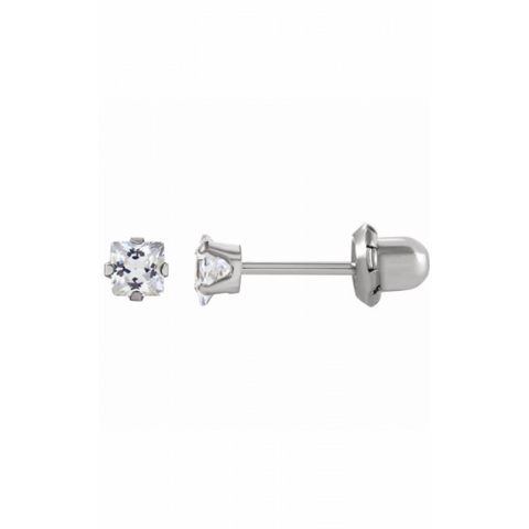 AVAILABILITY: Special Order COLLECTION: Youth MATERIAL: 14K White Gold TYPE: Earring EARRING TYPE: Gemstone,Stud EARRING BACKS: Push STONE SHAPE: Princess [/unique_description_1]