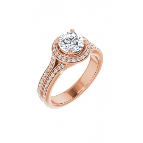 Show your partner how deep your love extends with this impeccable halo engagement ring from Stuller. This versatile engagement ring features heirloom embellishments with a contemporary design. Made from premium 14k rose gold, this keepsake can withstand normal wear and tear for decades. With masterful metalwork in this ring's design, this engagement ring is a stunning representation of your lasting commitment. A secure setting guards your center stone from abrasions, helping to give any stone unmatched shimmer and shine. Azzi Jewelers in Lansing, Michigan are devoted to supplying customers with a plethora of engagement jewelry from today’s leading brands. Reach out to us above online or over the phone, or stop by to see this piece in person.