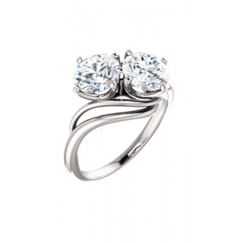 Give your lover the gift of brilliance and fire with this impeccable two stone engagement ring from Stuller. This timeless engagement ring features vintage characteristics with a contemporary design. Made from premium 14k white gold, this engagement ring will retain its original luster for ages. With masterful metalwork in this ring's build, this engagement ring is a beautiful representation of your lasting commitment. A protective setting shields your center stone from blemishes, helping to give any stone unmatched shimmer and shine. Azzi Jewelers in Ingham County are devoted to supplying customers with a variety of luxury jewelry from the world’s major brands. Reach out to us above online or over the phone, or stop by to see this piece in person.