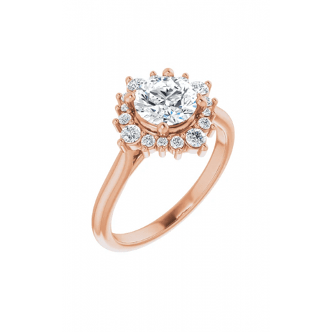 Show your partner how deep your love extends with this glamorous halo engagement ring from Stuller. This multipurpose engagement ring features old details with a contemporary design. Made from high-quality 14k rose gold, this keepsake will retain its original luster for ages. With expert metalwork in this ring's build, this engagement ring is a beautiful representation of your continued commitment. A secure setting cushions your center stone from damage, helping to give any stone shimmer and shine. Azzi Jewelers in Lansing, Michigan are dedicated to supplying customers with a variety of bridal jewelry from today’s foremost brands. Reach out to us above online or over the phone, or stop by to see this piece in person.