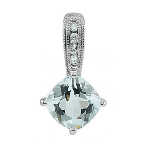A stunning necklace elevates your look and style and brings out the colors of your outfit. Give this remarkable gemstone and pendant necklace a try to add more daring pieces to your everyday look. This necklace from Stuller is made from 14k white gold offering unmatched durability with expert metalwork and design. The dazzling aquamarine and diamond stones emit a ceaseless glow all day. A strong setting keeps your cushion and round cut stone in pristine shape for the next generation while providing unparalleled brilliance. Azzi Jewelers stocks luxury bridal and fashion jewelry for any minimal or bold sensibilities and budget. For more information on this piece, give us a call or reach out to us online.