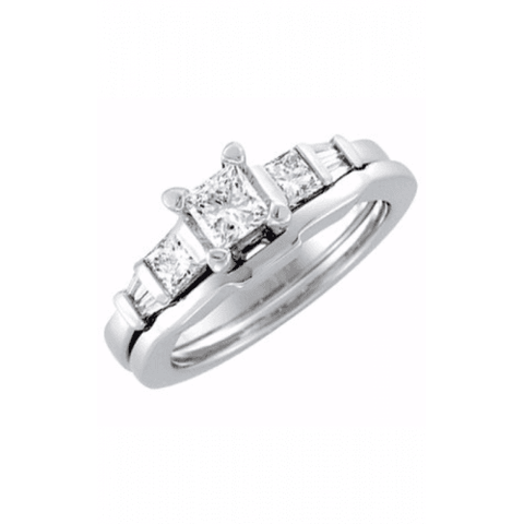 AVAILABILITY: Special Order COLLECTION: Three Stones MATERIAL: 14K White Gold TYPE: Engagement Ring RING SIZE: 7 SET: Engagement Ring CENTER STONE CLARITY: SI2,SI3 CENTER STONE COLOR: G,H STONE CLARITY: SI2 / SI3 STONE COLOR: G / H STONE SHAPE: Baguette / Princess STONE TOTAL WEIGHT - CT: 0.62 CENTER STONE INFORMATION