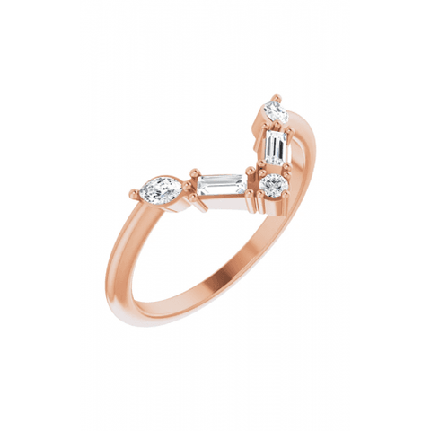 AVAILABILITY: Special Order MATERIAL: 14K Rose Gold TYPE: Wedding Band RING SIZE: 7 STONE CLARITY: SI2 / SI3 STONE COLOR: G / H STONE SHAPE: Baguette / Marquise / Round STONE TOTAL WEIGHT - CT: 0.25 [/unique_description_1]