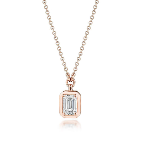 A bezel pendant of captivating depths. The high polish frame enthralls the lab grown diamond center. On the reverse, TACORI Crescent detailing and pinpoint mined diamonds add dimension.